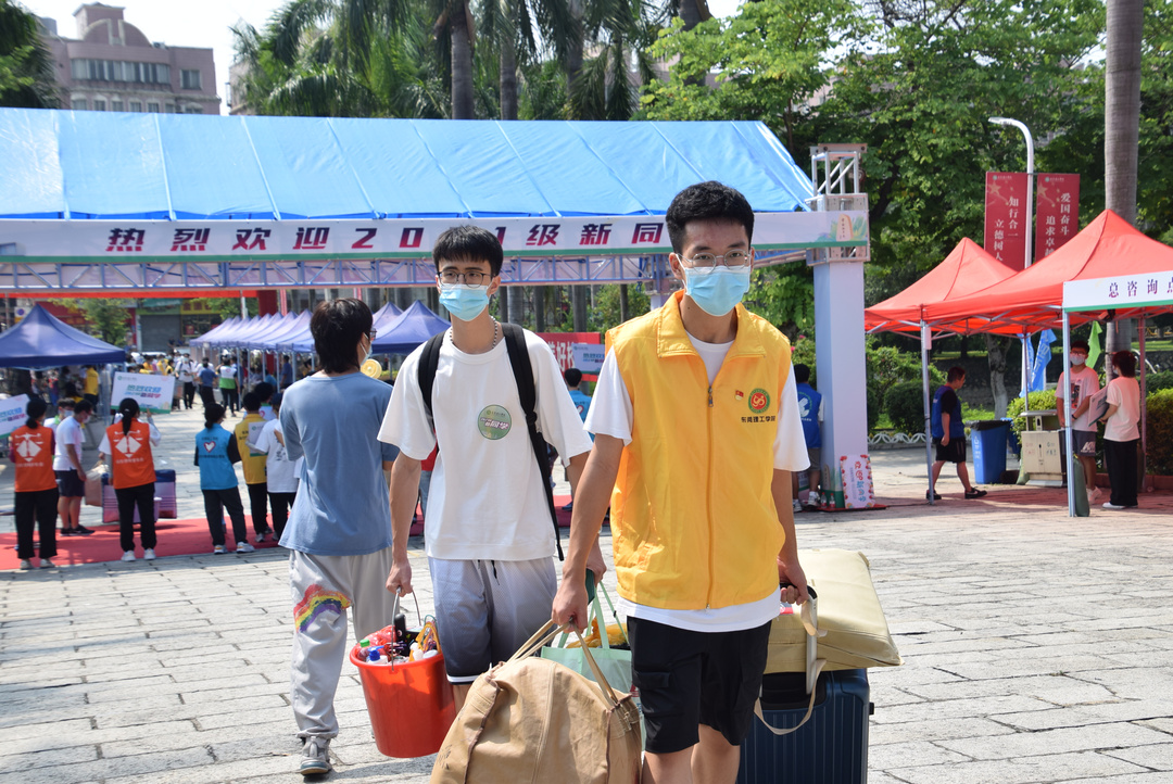 学生党员身穿黄色志愿者马甲,佩戴党员徽章,加入了迎新的队伍,本次迎新地点在学校正门,因为疫情影响,家长不能陪同新生进入校园,但志愿者们热情高涨,以积极的行动展现了看球吧