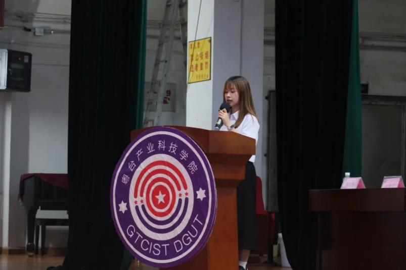 仪式第六项,新生代表2024级经济与金融1班的邓子菲同学发言,她代表全体新生向师长和亲友表示真挚的感谢,并表示将在四年大学生活中,学而知不足,学以致用,开拓创新,抓紧机遇,迎接挑战。