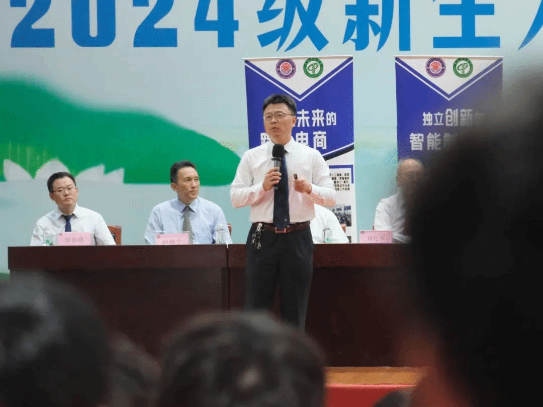 最后,学院党委书记宋美娴上台讲话。她寄语2024级新生“一要敢于有梦:明方向,立目标;二要勇于追梦:善规划,敢超越;三要勤于圆梦:践行动,敢担当。”最后,宋美娴书记要求新同学积极响应习近平总书记对青年人的号召,“用脚步丈量祖国大地,用眼睛发现中国精神,用耳朵倾听人民呼声,用内心感应时代脉搏,把对祖国血浓于水、与人民同呼吸共命运的情感贯穿学业全过程、融汇在事业追求中”。