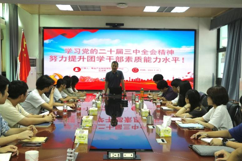 会上,丘永辉副书记领学了《中国共产党第二十届中央委员会第三次全体会议公报》和《中共中央关于进一步全面深化改革、推进中国式现代化的决定》重要内容。结合同学们的工作实际,丘永辉副书记就团学学生骨干如何努力提升素质和能力水平提出了具体的要求。