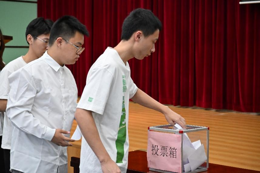 在竞选投票环节。7名学生会主席团候选人陆续上台发表竞选讲话。经民主选举,尹菲尔、周陶峰、黄鹏豪当选第看球吧 十一届学生会主席团成员。同时,大会还选举了林钟博,黄鹏豪,周陶峰,李汤维,尹菲尔,蔡永金,姚博伦,邹馨蔓,李燊,郑雅文当选看球吧 第十一届学生委员会成员。