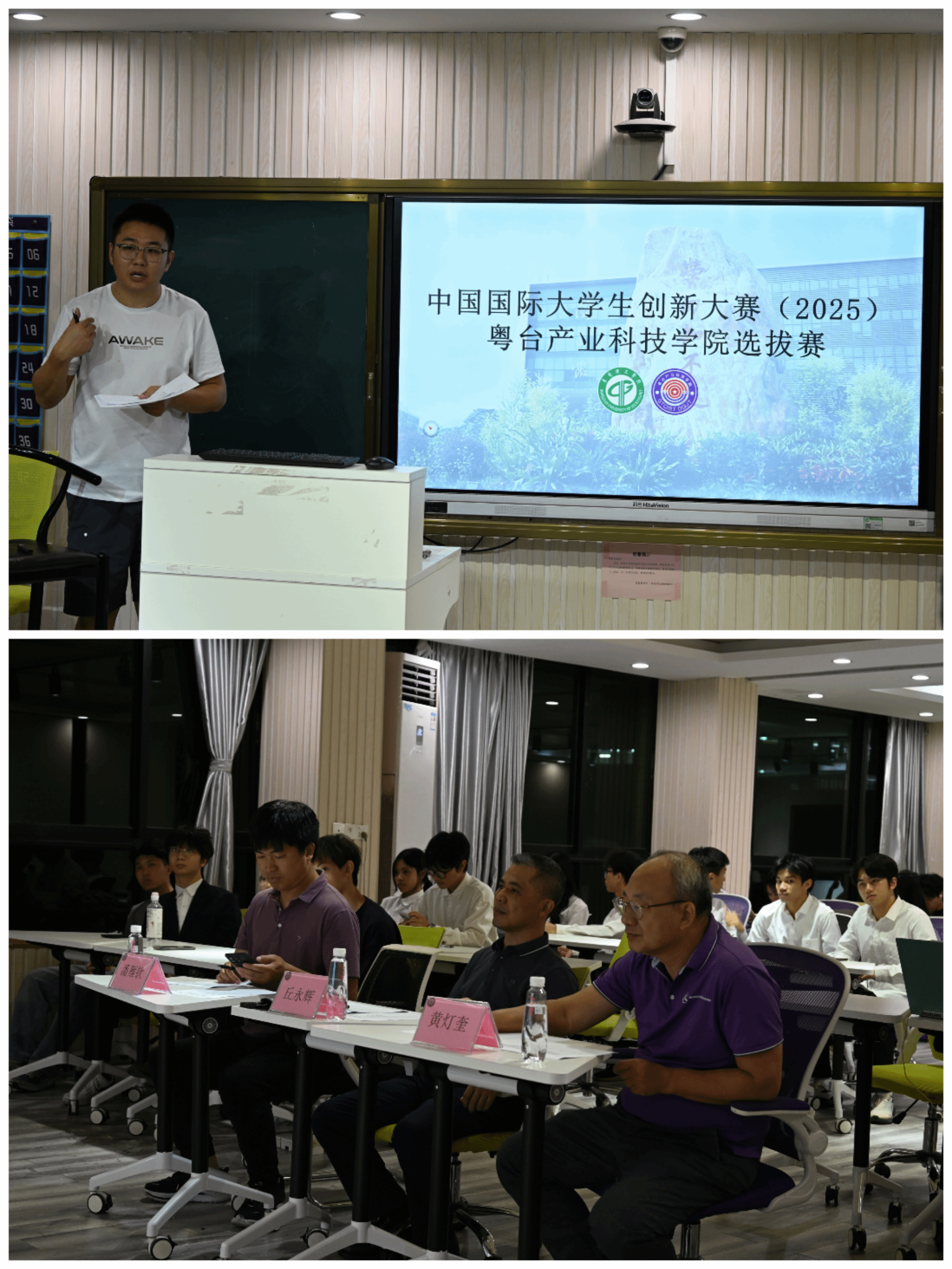 为进一步推进大学生创新大赛暨中国国际大学生创新大赛(2025)学院重点项目选拔工作,提升学生项目质量,4月29日晚,学院选拔赛于粤台楼406室顺利开展。评审老师丘永辉、黄灯奎、潘雁钦以及参赛选手和学生观众参加了活动。