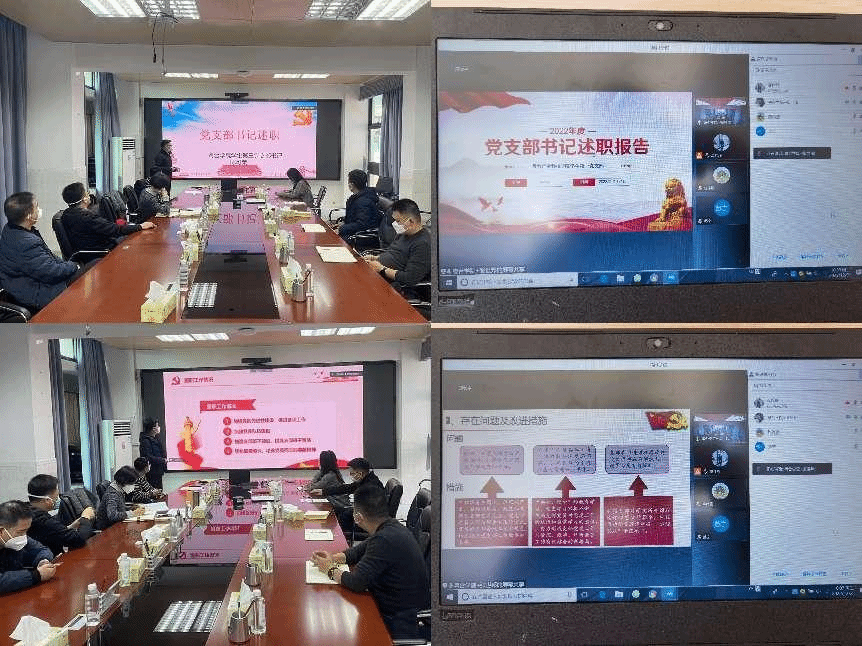 会上,教工和学生党支部共4位支部书记逐一对党支部成立半年来履行基层党支部书记抓党建主体责任和抓党建工作情况工作进行了全面总结,分别从个人履职情况、支部思想政治工作及支部建设成效情况、支部存在问题与下一步工作思路等三个方面进行述职汇报。