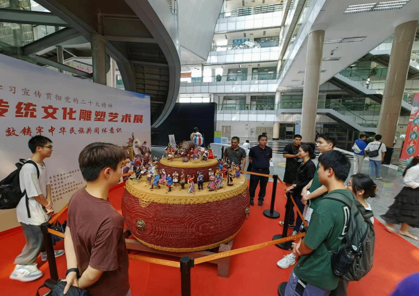 展会通过雕塑直观的方式展现了56个民族文化的风土人情场景,呈现了不同民族的精神文化,体现每个民族经典的非遗、建筑、服饰、婚俗等细节特色。让大家更深入了解各民族的风土人情、文化差异,增进了解、消除隔阂,促进各民族师生交往交流交融的氛围。