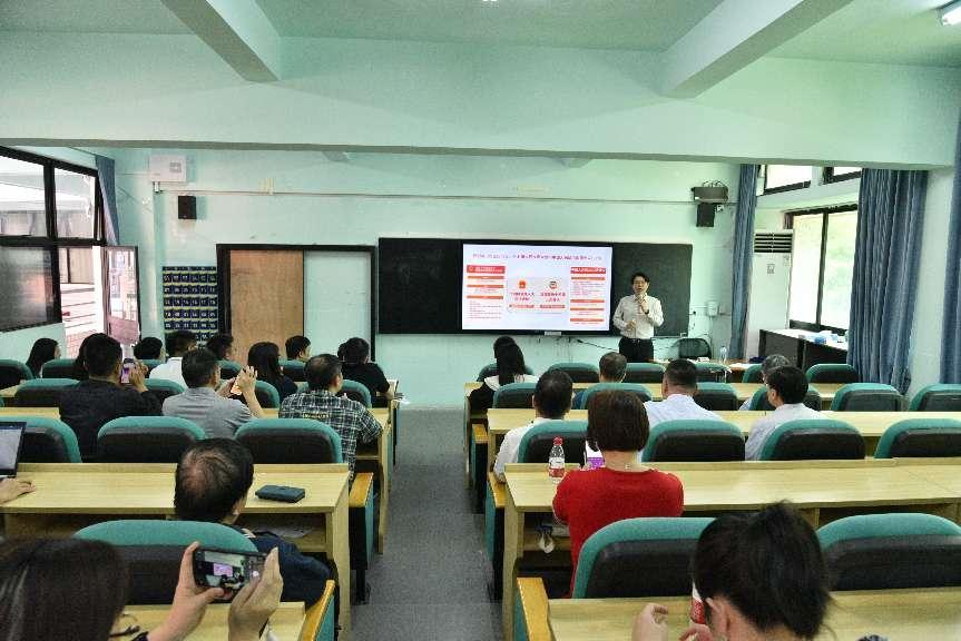 在莞城校区粤台楼305教室召开全体教职工政治理论学习会。学院党委邀请马克思主义学院马冀群博士作题为“‘共筑同心圆 聚力向未来’——2025年全国‘两会’精神学习”的专题辅导报告。学院全体教职工参加了学习,会议由学院党委书记宋美娴主持。