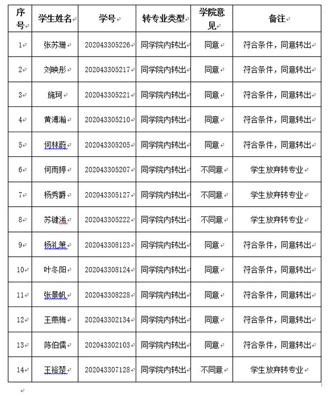 应《关于2020-2021学年第一学期受理学生转专业工作的通知》要求,根据《东莞理工学院本科生转专业实施办法》(莞工〔2015〕47号)及《看球吧 转专业考核方案》,经学院党政联席会议审批,现将申请转出的学生审批结果公布如下。