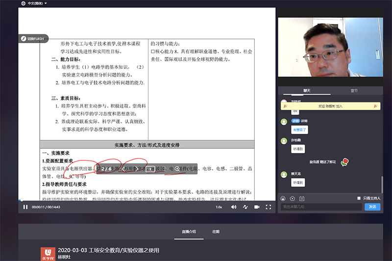 组织了本学期全部任课教师从2月份开始,进行了为期半个月的线上教学培训、演练和教学实践准备工作。在正式开学前2天,对新学期第一天上课的所有课程进行了师生共同参与“实战”线上教学演练。