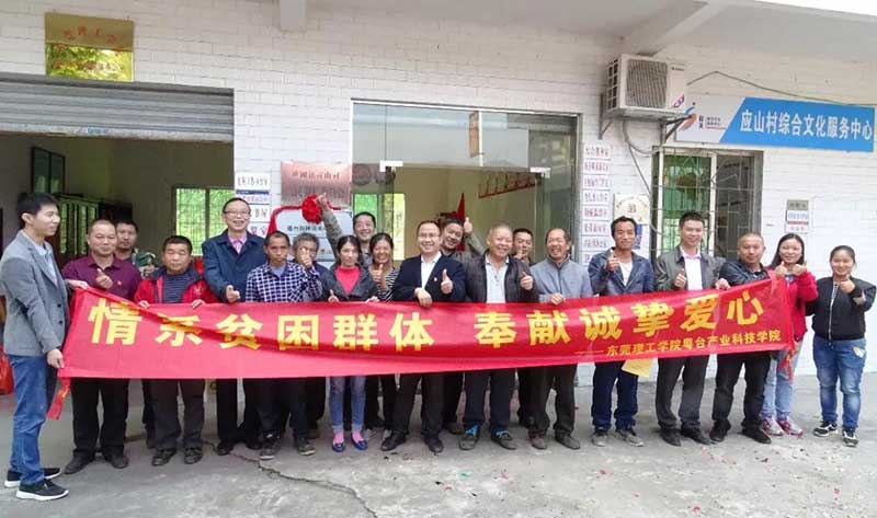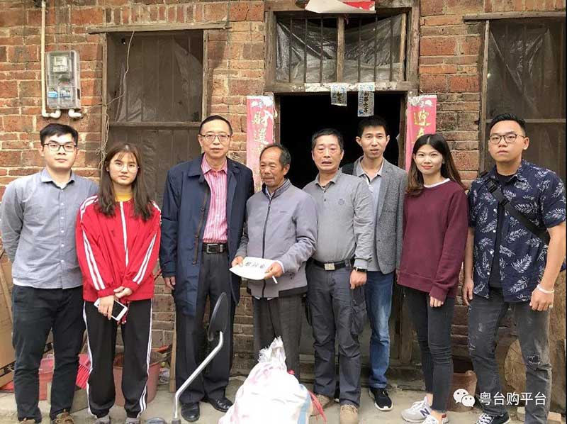 直属支部副书记王玉带领老师代表和学生战队,赴韶关乐昌市黄圃镇应山村,走访慰问对口帮扶贫困户,赠送慰问金并与村委会干部和村民们举行“粤台购跨境电商平台”揭牌仪式,落实电商扶贫工作,建立应山村扶贫站点,打通“电商扶贫”的最后一公里,帮助应山村农民自强自立,早日脱贫致富。