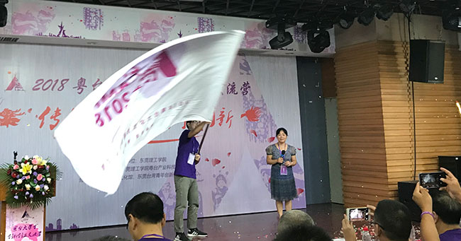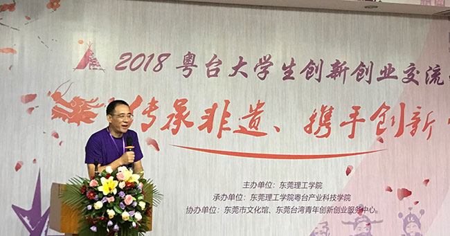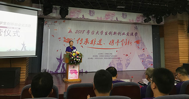 8月24日,由东莞理工学院主办的2018粤台大学生创新创业交流营开营仪式在东莞理工学院莞城校区小剧场隆重举行。广东省人民政府台湾事务办公室副处长阳志萍、东莞理工学院副校长杨敏林、东莞市人民政府台湾事务局副调研员谢春、东莞市莞台经济文化交流中心主任刘伟锋、东莞市文化馆非遗保护部主任何超群、东莞台湾青年创新创业服务中心营运长黄朝凯、东莞理工学院看球吧