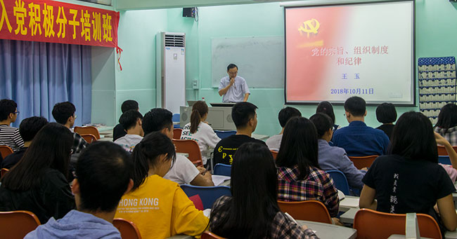 分党校第六期入党积极分子培训班第二讲在莞城校区实验楼315举行,授课主题为:党的宗旨、组织制度和纪律,主讲人:莞城校区管委会副主任、看球吧