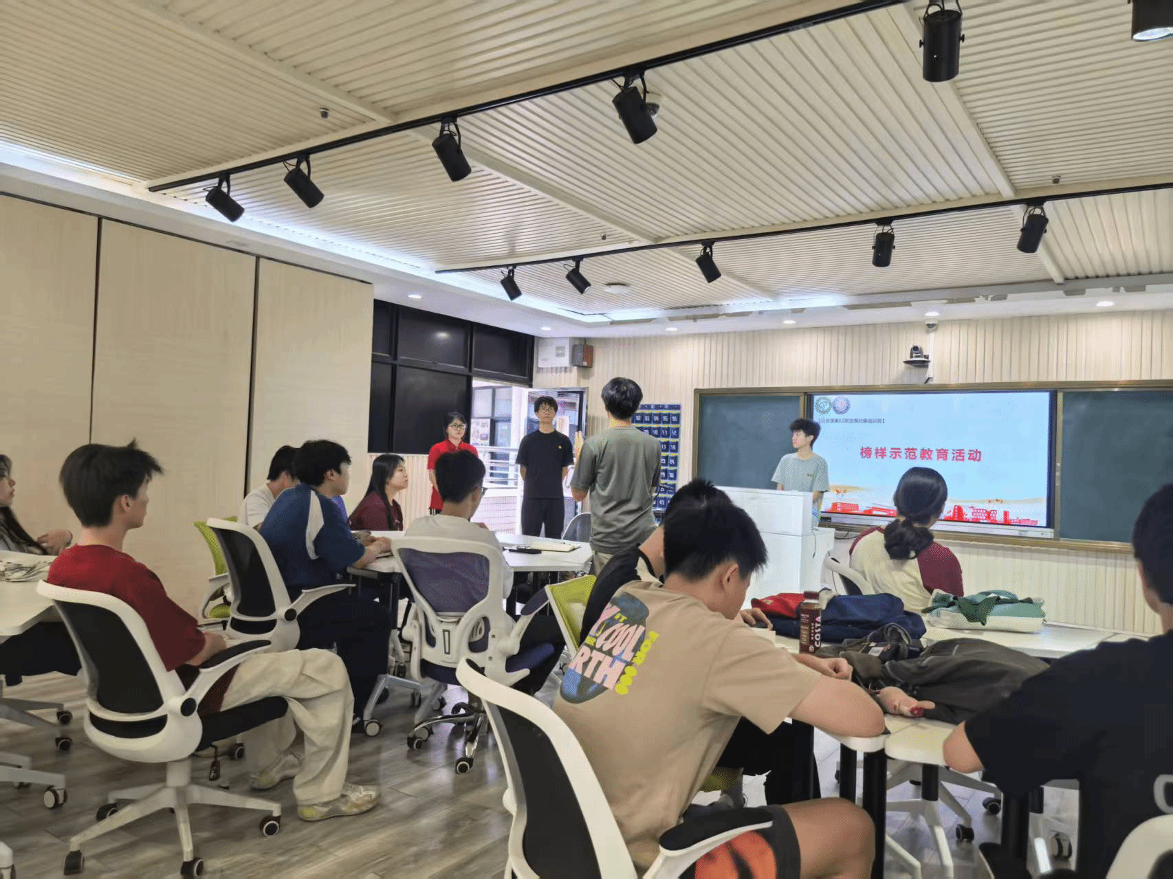学生第一大党支部党员龙兴,2025年荣获国家奖学金、获评优秀班干部。为发挥榜样示范作用,他以“学习工作、社会实践、未来规划”为核心,向学员们分享了个人成长经验与心得。“不忘初心,回报不一样的粤台;牢记使命,争做不一样的精彩。”他的话语铿锵有力,不仅为学员们树立了正向的人生观与价值观导向,更激励大家以实际行动努力成为一名合格的共产主义接班人。