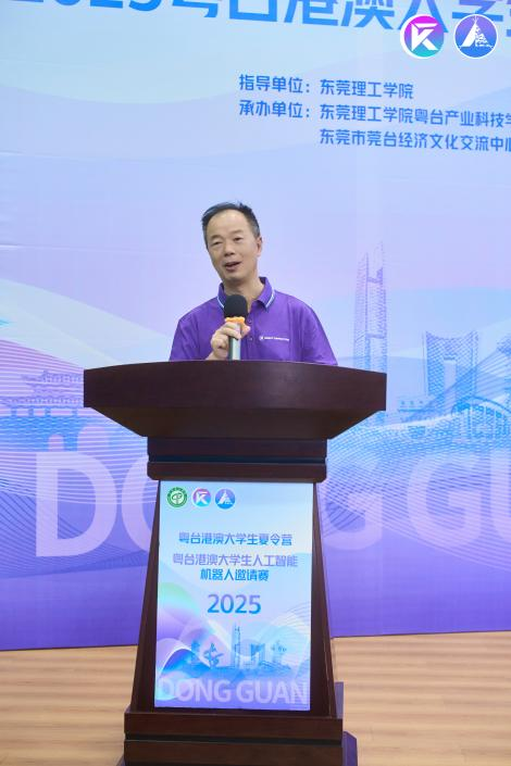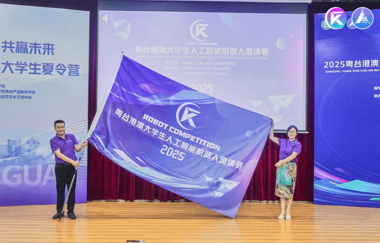开幕式上,东莞理工学院党委副书记李忠红在致辞中指出,大赛不仅是技术的较量,更是两岸青年深化交流、互学互鉴的重要桥梁。东莞市台港澳事务局副局长王柏桃肯定了赛事对深化两岸创新发展合作的积极意义,并为大赛授旗,标志着赛事正式启动。来自台湾、香港、澳门以及东莞理工学院、福建三明学院等十数支高校精英团队齐聚一堂,在赛场上挥洒才智,诠释“科技赋能未来,创新引领成长”的赛事精神。