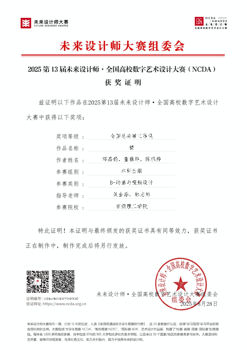 莞工粤台学子在2025年第13届未来设计师·全国高校数字艺术设计大赛(NCDA)中取得优异成绩