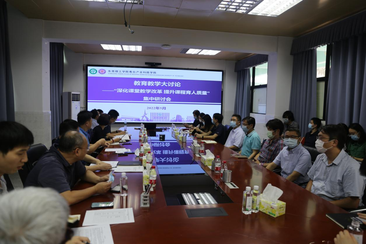 本次会议由陈伟院长主持,党支部书记宋美娴,副书记谢春晓及全体教职工参会。会上,陈伟带领全体与会人员对《东莞理工学院“深化课堂教学改革 提升课程育人质量”教育教学大讨论工作方案》进行重点研讨。
